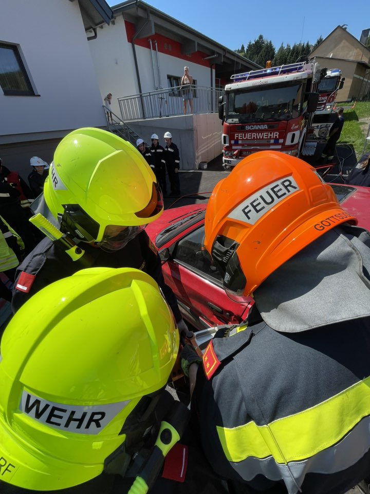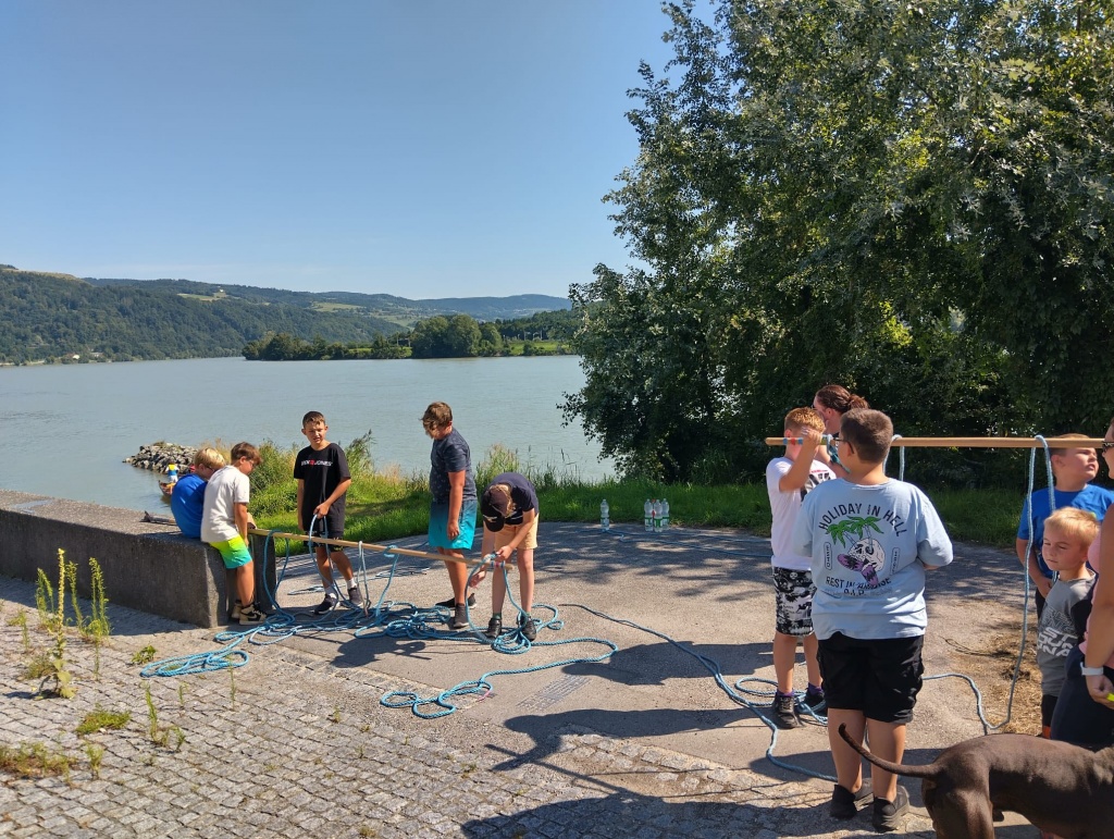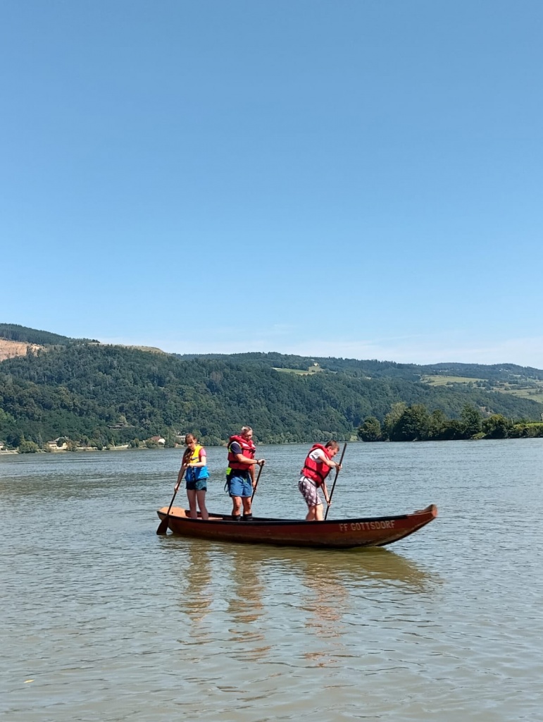 Nach dem Frühstück ging es zum Gottsdorfer Hafen, wo die Jugendlichen die Zillen ausprobieren konnten. Am Nachmittag folgte ein technischer Einsatz – „Verkehrsunfall mit eingeklemmter Person“. Die Kids sicherten die Unfallstelle, stellten Brandschutz her und konnten gemeinsam mit aktiven Kameraden das hydraulische Rettungsgerät testen. Danach gab’s Eis und eine große Wasserschlacht.